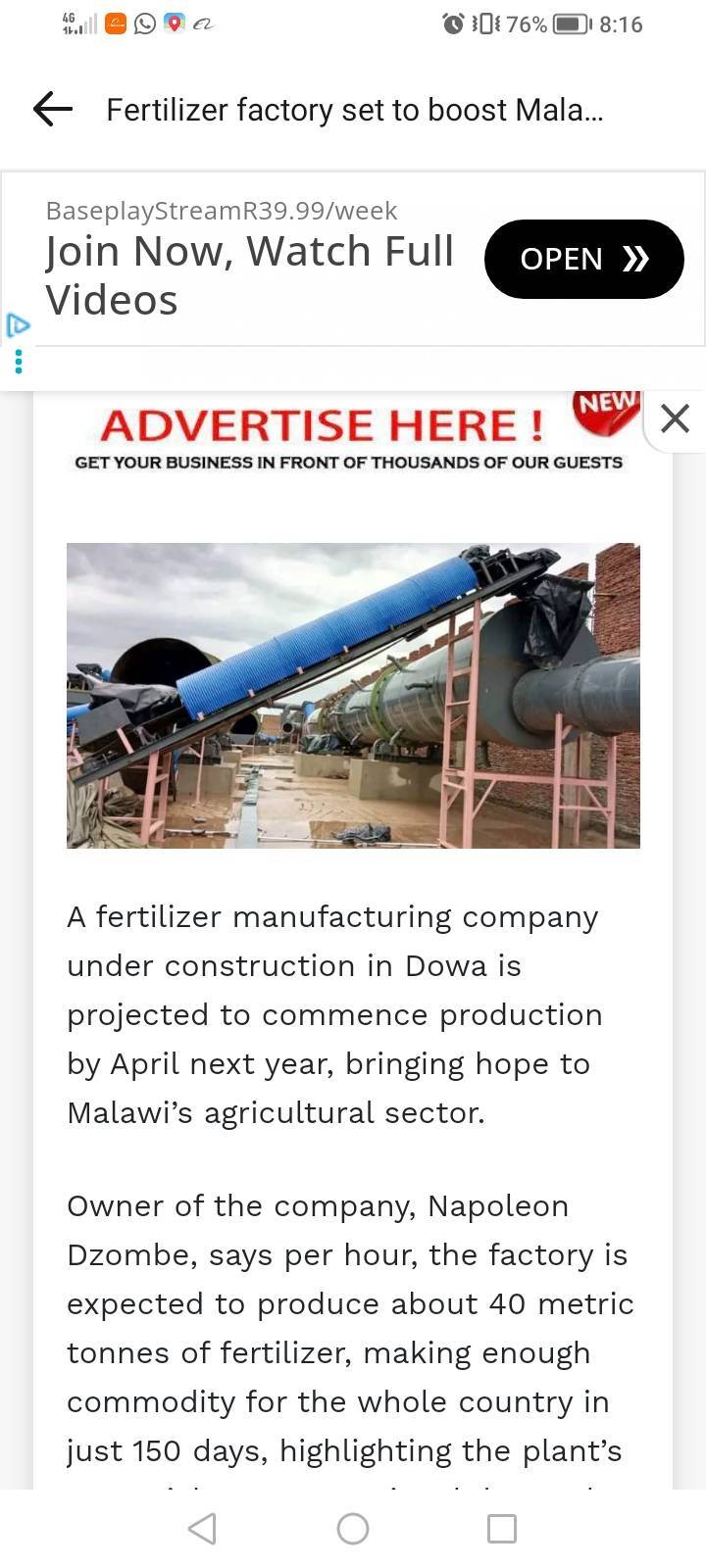 A compound fertilizer production line supplied by Shunxin to a Malawian client has recently been reported by local websites in Malawi, drawing attention to the project’s positive impact on regional agricultural development.